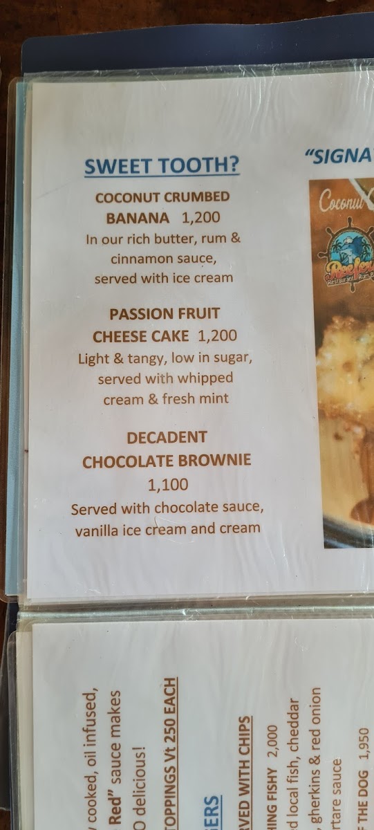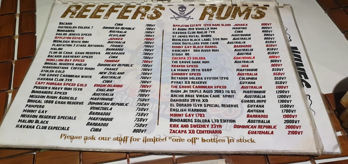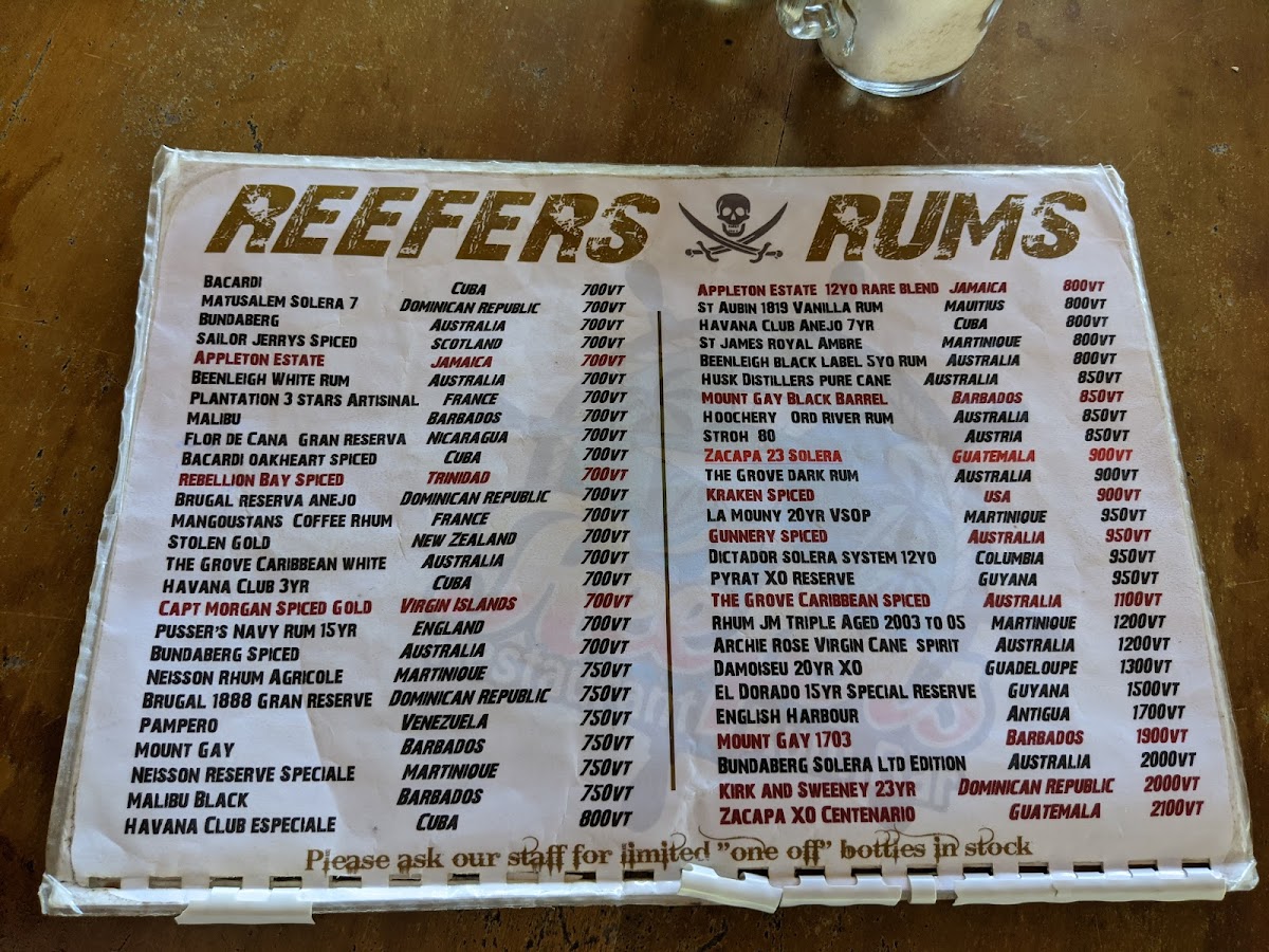 At Reefers Restaurant & Rum Bar, located in the heart of Port Vila, Vanuatu, you’ll find a menu that’s as vibrant as the island itself. The atmosphere is laid-back, offering the perfect spot to unwind while indulging in some of the freshest dishes around. Whether you're in the mood for a juicy burger, a light seafood salad, or a hearty local dish, the selection caters to all tastes. Pair your meal with one of the signature rum cocktails, carefully crafted to bring out the flavors of the island. Every bite at Reefers promises a unique experience, blending tropical ingredients with an inviting ambiance. The menu offers an eclectic mix of island-inspired flavors, ensuring there's something for everyone to enjoy.